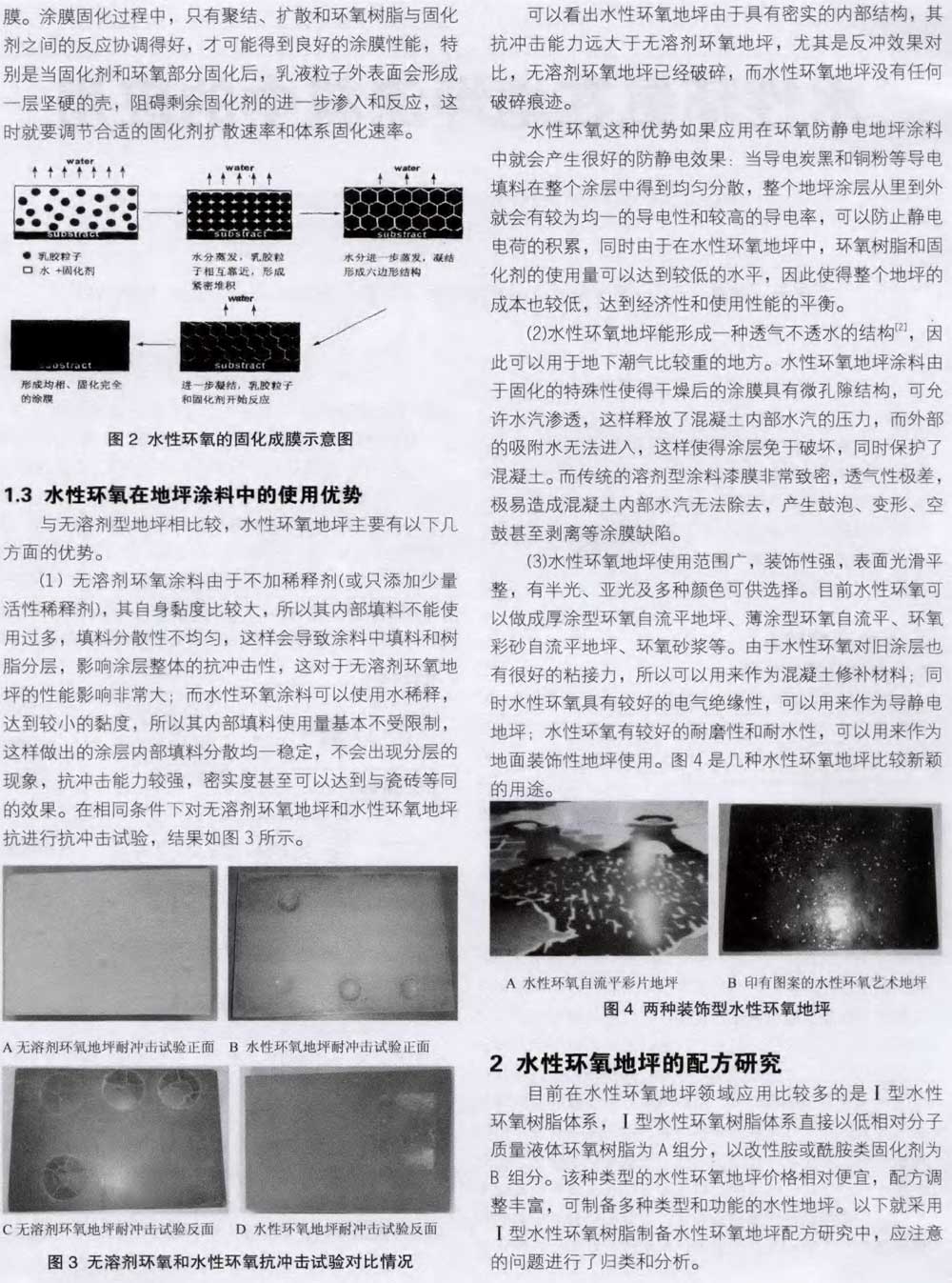 (2)基于水性环氧地坪的配方研究,介绍了水性环氧地坪各组分材料的选择和使用对性能的影响。