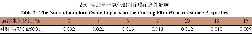 2.2 添加纳米氧化铝对涂膜耐磨性影响