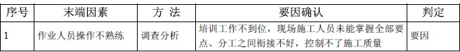 经过对各种因素的调查分析,确定5 条要因,讨论结果如下: