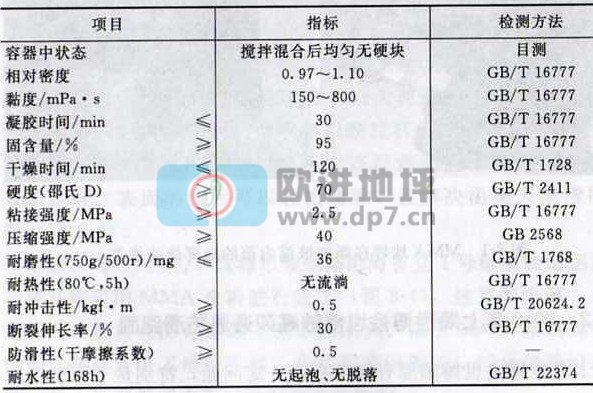 MMA地坪涂料目前国内还没有标准可以遵循,不过中国建筑材料联合会地坪材料分会正在积极推进相关标准的制订,其中《整体地面工程技术规程》国家行业标准正在制订中,起草了甲基丙烯酸甲醋(MMA)地面的材料质量技术要求、施工条件和验收标准。下表列出MMA地坪涂料的参数和技术要求。
